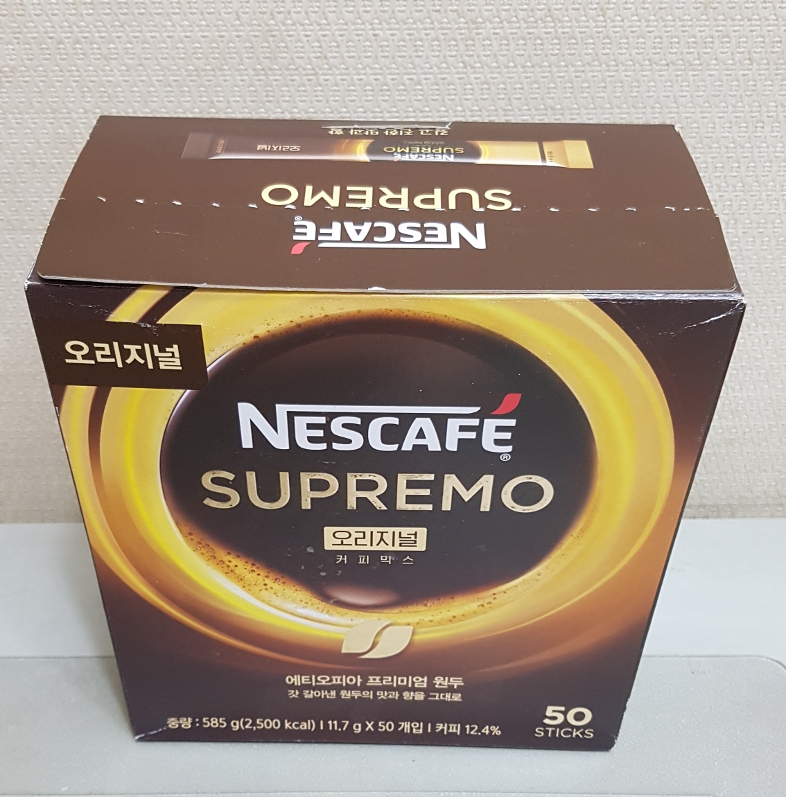일단, 제가 구매한 제품은 한 박스에 50포의 네스카페 수프리모 오리지널 커피믹스가 들어가 있는 제품이에요!