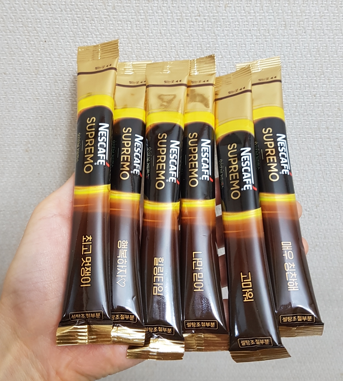 얼마나 맛있는지 직접 먹어보기 위해 박스를 개봉하고 네스카페 수프리모 오리지널 커피믹스 한포를 꺼내봤는데 포장지는 고급스럽더라구요~