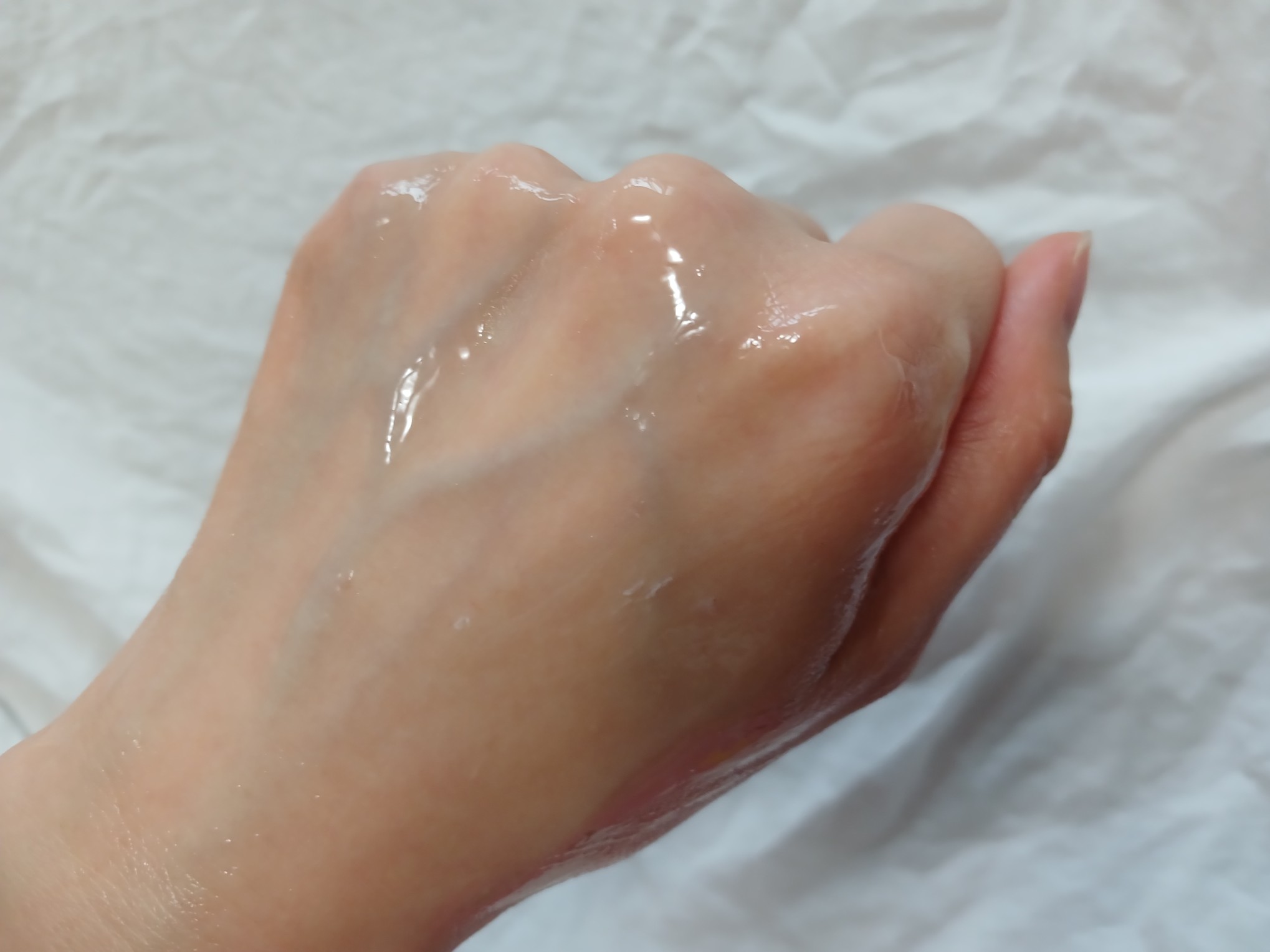 메디큐브 콜라겐 나이트 랩핑 마스크는 투명하고 무향이며 약간 점성이 느껴지는 제형이에요!