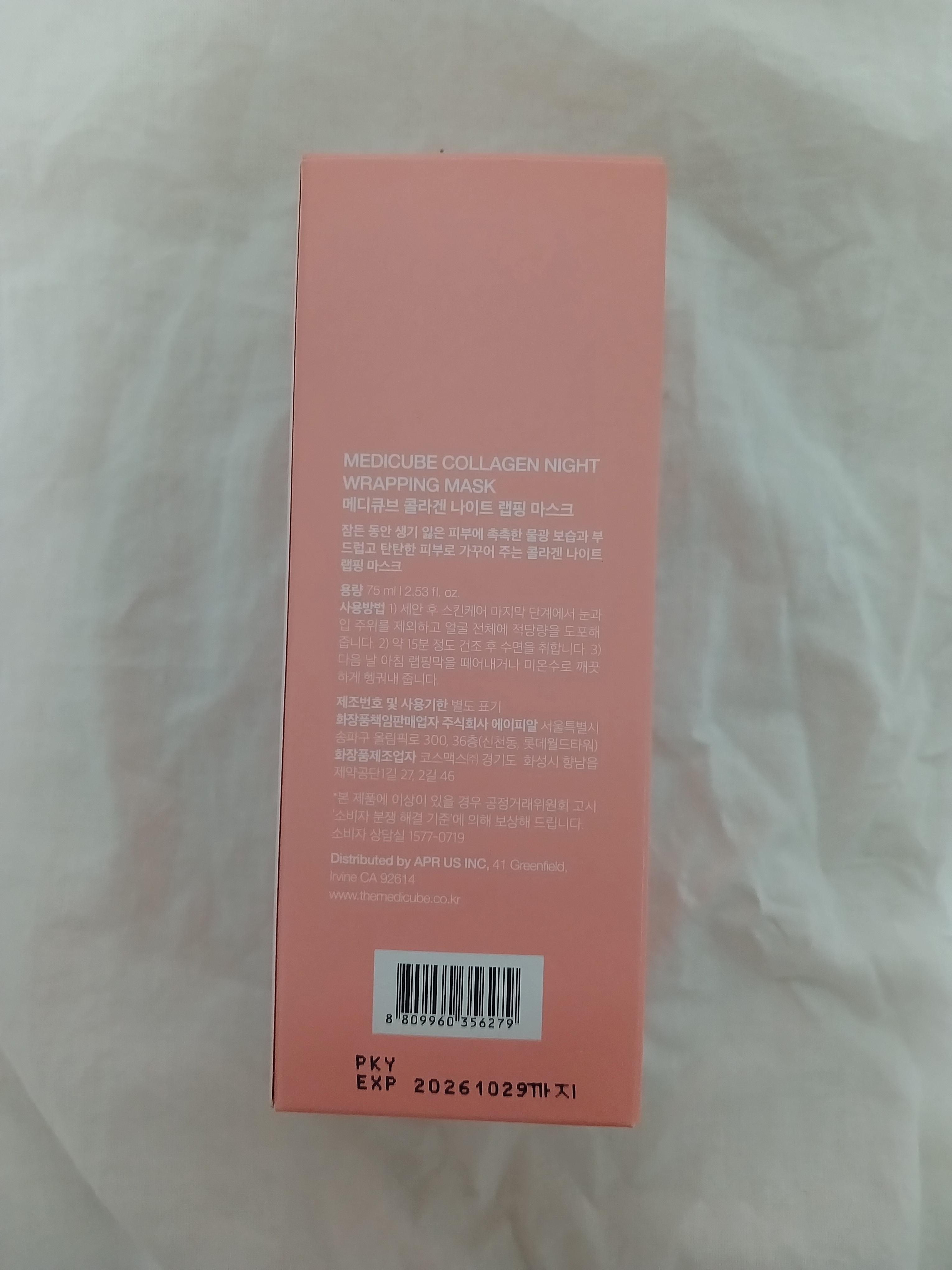 메디큐브 콜라겐 나이트 랩핑 마스크은 75ml로 예전에 비해 대용량으로 출시된거라고 하더라구요!