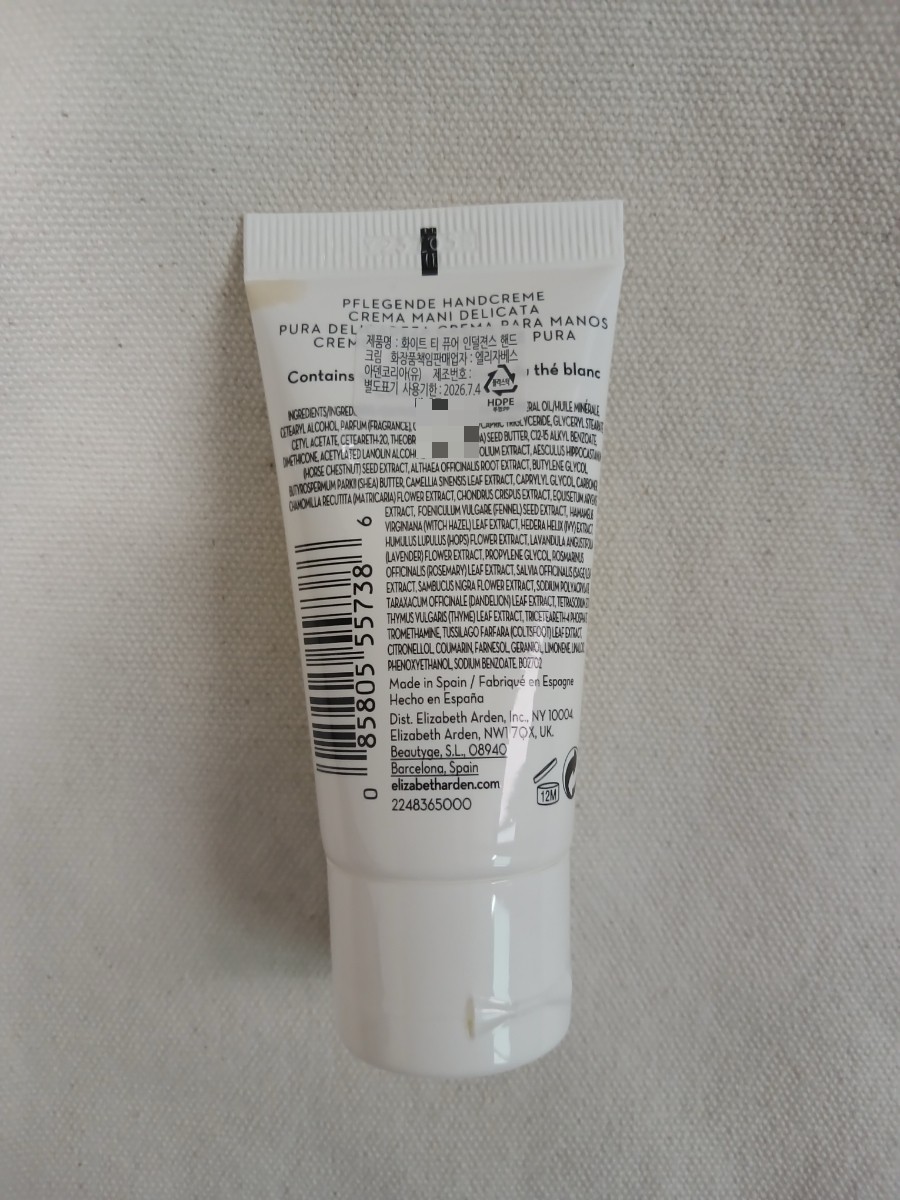 엘리자베스 아덴 화이트티 핸드크림 제형은 흰색의 약간 쫀쫀한 크림인데요, 발림성이 좋아서 부드럽게 스윽 잘 발려요!