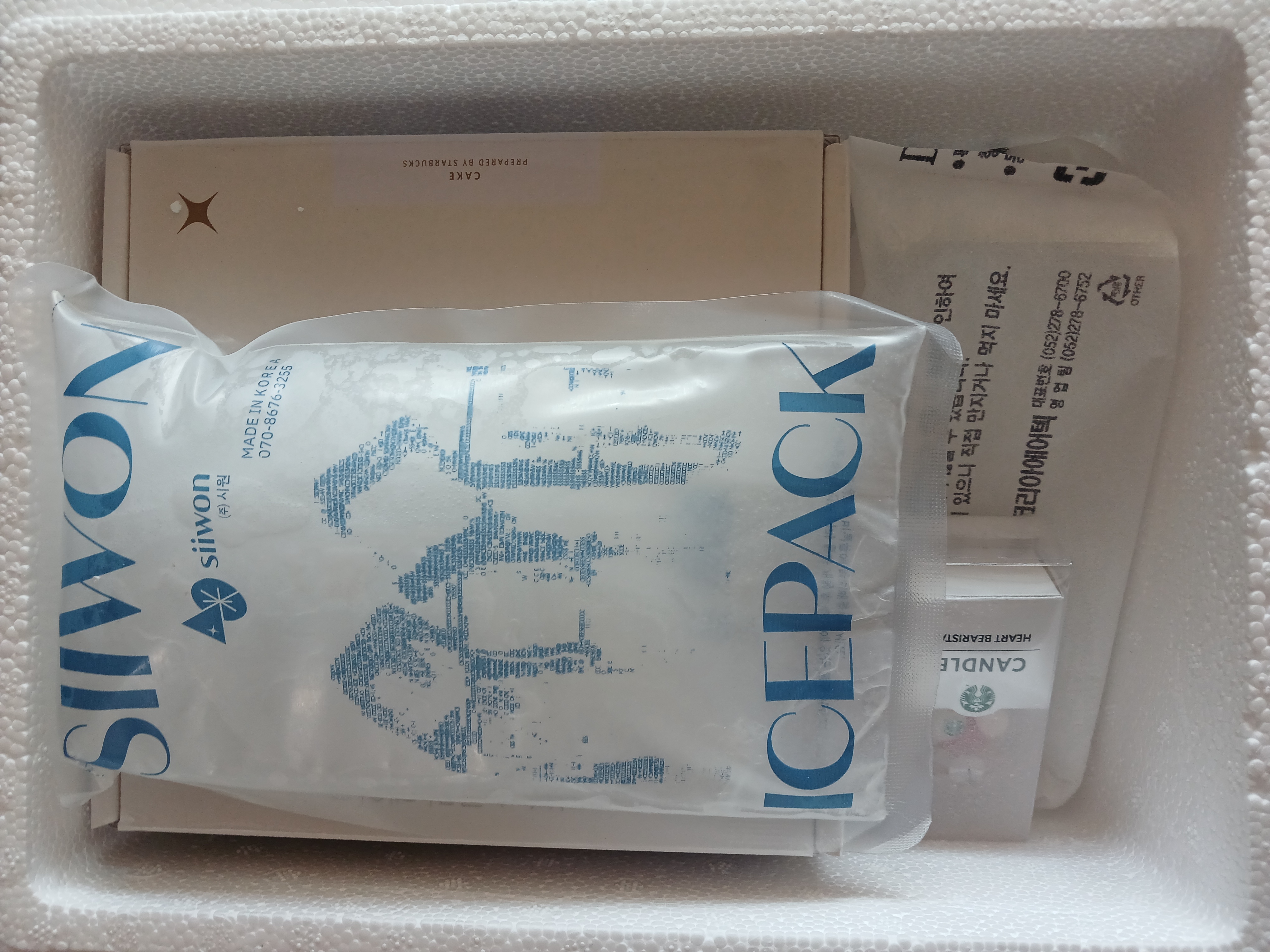 스타벅스 더블 초콜릿 홀케이크 배송은 아이스박스 안에 아이스팩과 드라이아이스까지 넣어서 케이크가 녹지 않게 잘 배송이 왔어요!