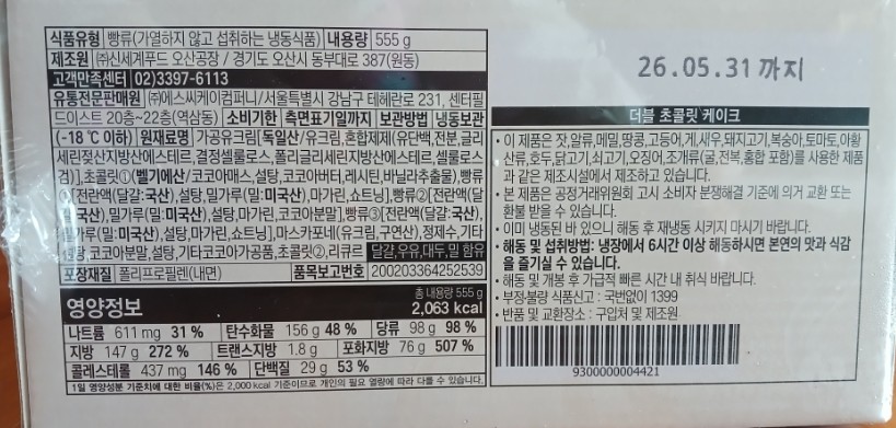 케이크 상자가 비닐로 밀봉 포장되어서 위생적이고 유통기한도 개봉하지 않고 해동하지 않음 5월 말일까지로 꽤 길더라구요!
