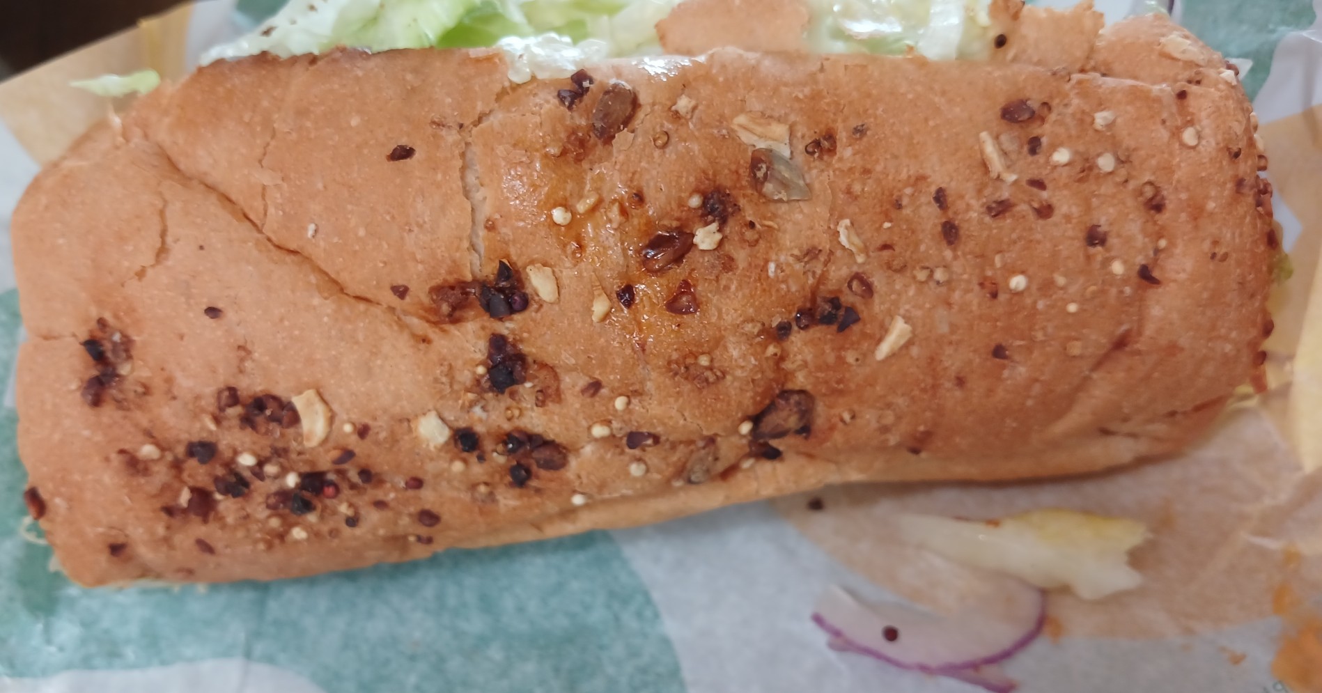 오늘은 폴드포크 타코 샐러드를 주문했기에 샌드위치는 클래식한 비엘티로 주문했고 빵은 그레인, 치즈는 모짜렐라, 소스는 랜치, 스위트어니언, 사우스웨스트 치폴레로 야채는 모두~로 픽!