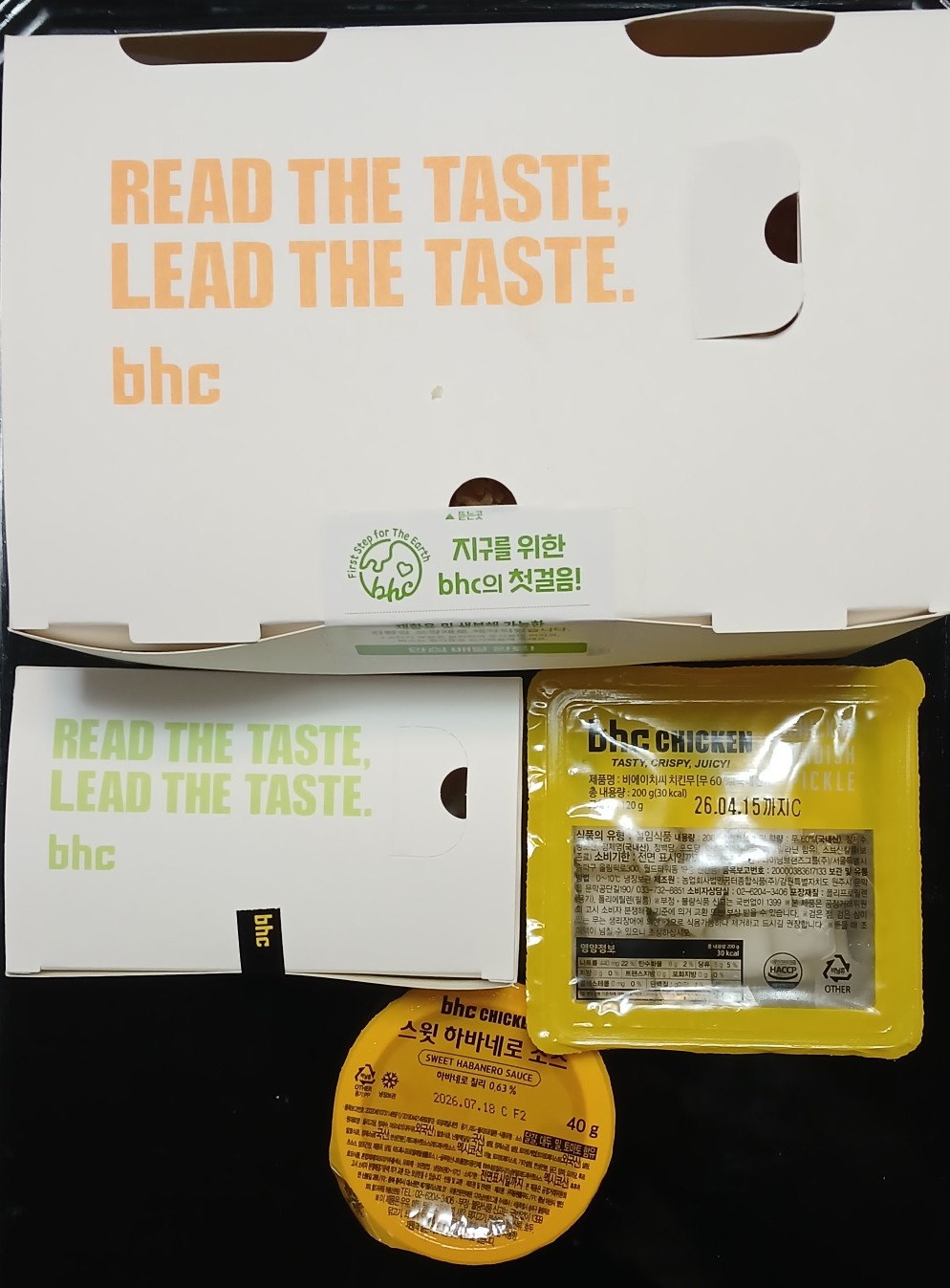 bhc 콰삭킹을 주문하면 기본적으로 무와 스윗 하바네로 소스 1개를 줘요!